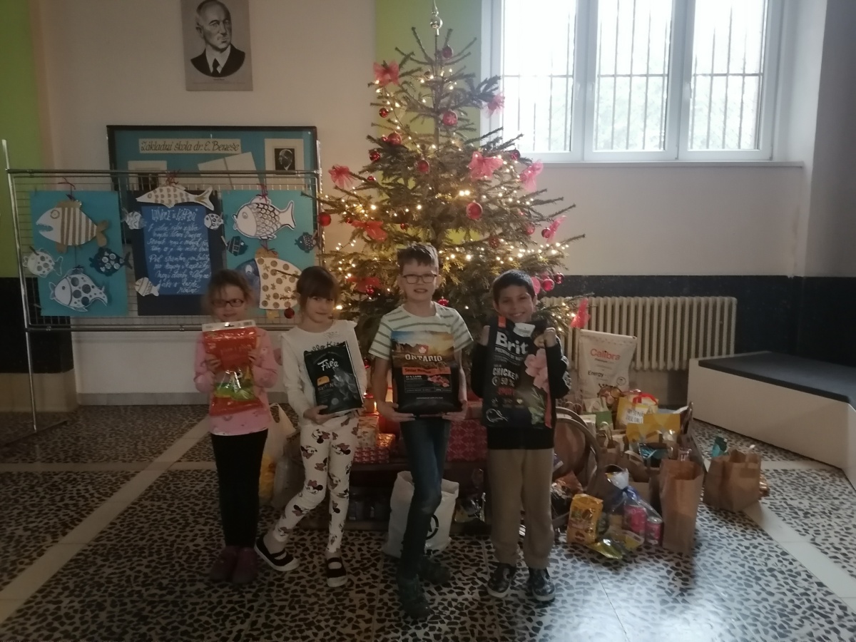 Před Vánocemi jsme již potřetí uspořádali sbírku pro pejsky a kočičky v útulku ve Březně. Vybrali jsme částku 6 300,- Kč a pod vánočním stromečkem ve vestibulu školy jsme od rodičů a žáků nalezli velkou nadílku pamlsků, granulí, konzerv, také náhubky, hračky a přenosku.