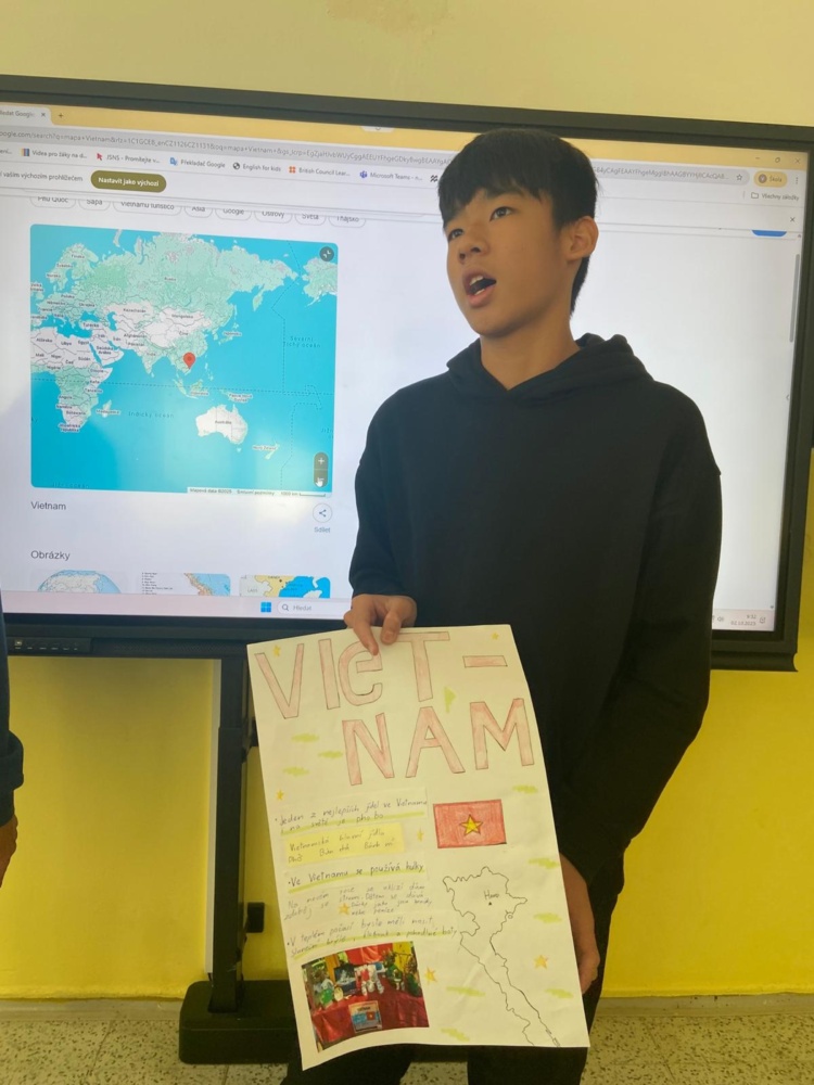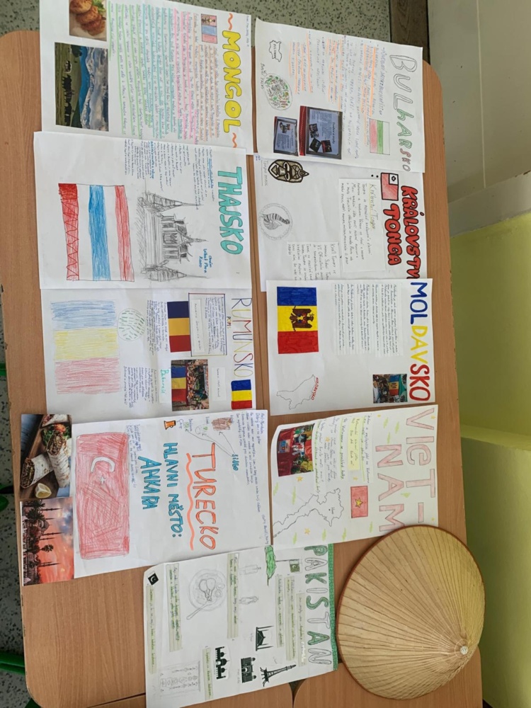Po návratu z Festivalu kultur jsme v hodinách ve skupinkách vytvářeli plakáty věnované jednotlivým kulturám a pak je prezentovali spolužákům. Na pásmo prezentací jsme měli vyhrazené tři hodiny a udělali jsme si tak malý Festival kultur přímo ve třídě. Velmi osvěžující a zajímavé byly výstupy našich spolužáků, jejichž rodiny mají kořeny mimo Českou republiku. Přenesli jsme se tak na Ukrajinu, do Vietnamu a Mongolska přímo s nimi. Naši spolužáci nám vyprávěli o místech, svých rodinách a zvycích, přinesli národní oblečení a doplňky, viděli jsme ukázky tance, překládali věty a dokonce jsme díky pomoci rodičů mohli ochutnat mongolské národní jídlo buzz.