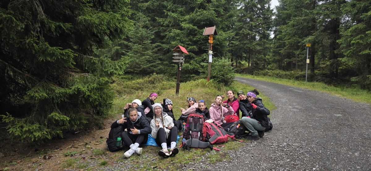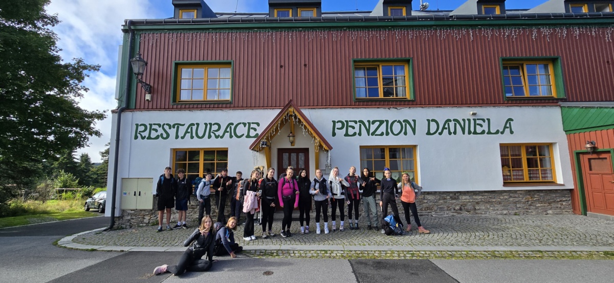 Ve dnech 10. až 12. září se žáci 9. ročníku vydali na třídenní přechod Krušných hor v rámci projektu Stezka Českem pro školy. Trasa vedla z Kovářské přes Klínovec, Boží Dar a Horní Blatnou až do Nejdku. Během výpravy jsme společně ušli celkem 48 kilometrů. Počasí nám přálo, i když nás místy potrápil déšť, vítr a únava. Cestou jsme si užili krásné výhledy, přírodu i společné zážitky.