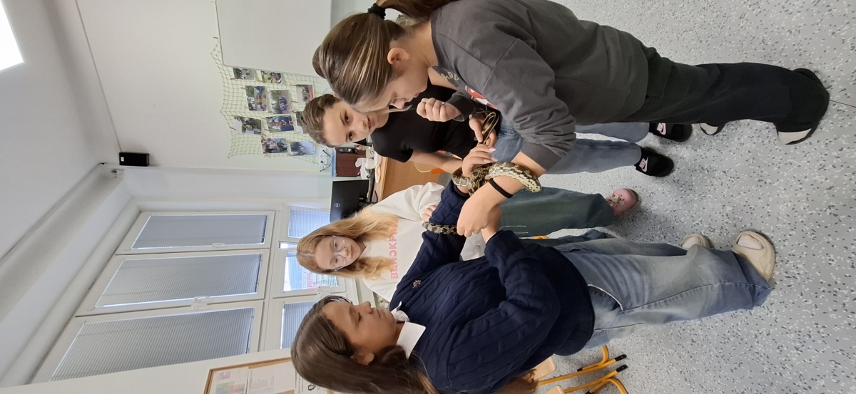 Žáci sedmých ročníků se zúčastnili besedy zaměřené na hady, jejich život a ochranu v přírodě. Program vedli zkušení herpetologové manželé Dolinayovi, kteří žákům přiblížili svět těchto často neprávem obávaných živočichů.