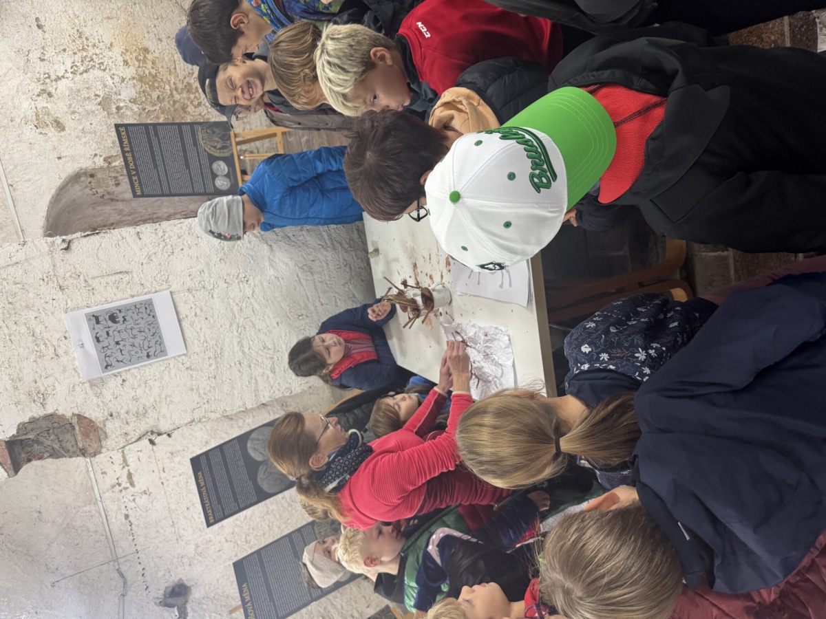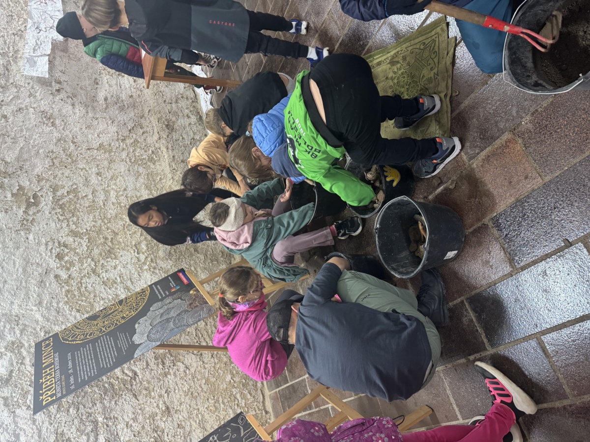Za tajemstvím archeologie do muzea Mladoboleslavska na hradě se ve čtvrtek 9. října vydali žáci 3.A. Každý si své bádání zapisoval do badatelského listu. Dozvěděli se například, které plodiny naši předci na českém území pěstovali a které se tu v pravěku ještě nenacházely. Prohlédli si různé archeologické nálezy včetně lidských a zvířecích kostí, úlomků nádob a cihel. Vyzkoušeli si, jaké to bylo malovat uhlem na stěny jeskyně, co a jak pravěcí lidé ztvárňovali. Přivoněli si k léčebným bylinám a trochu čarovali, ale hlavně si vyzkoušeli práci archeologa, a každý si svůj nález mohl odnést domů.